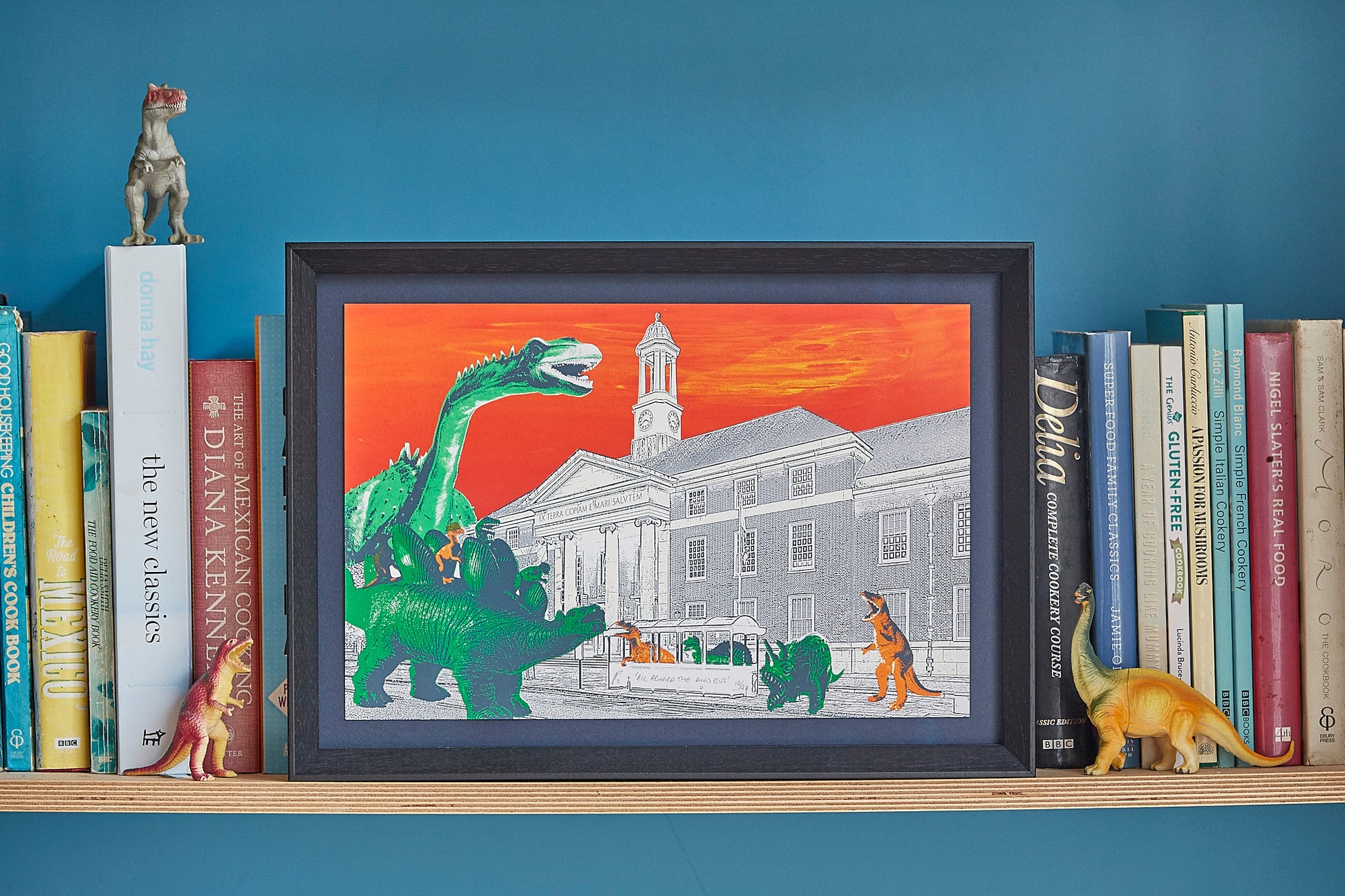 The dino bus is stopping at the Town Hall in Worthing to pick up dinosaurs and take them on their annual holiday to Butlin's in Bognor Regis, they are all singing "we're all going on a dino holiday, no more worries for a week or two..."