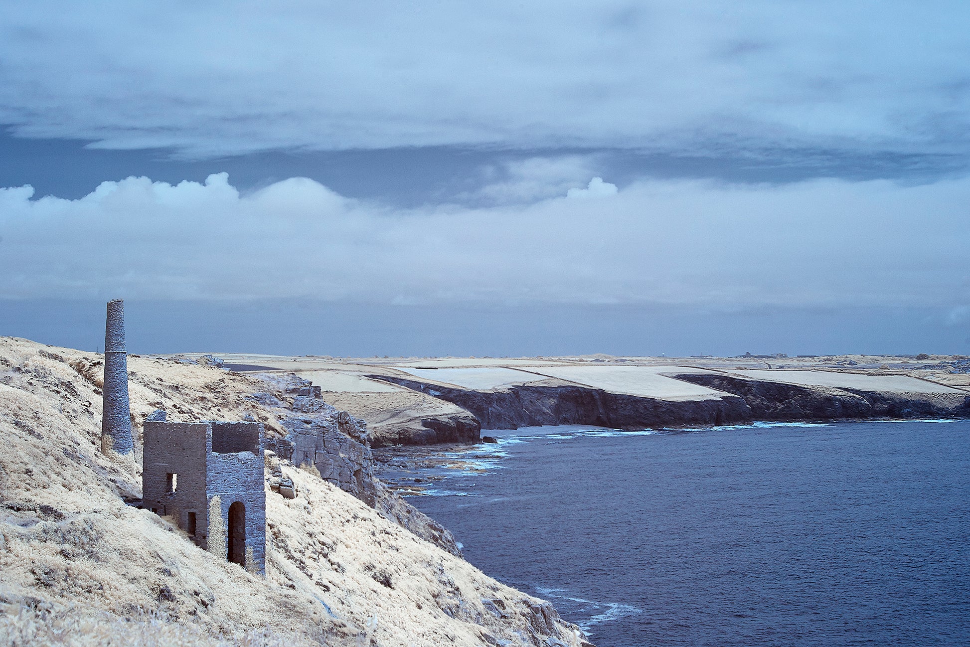 This is an infra red photograph of Wheal Trewavas, an old copper mine near Porthleven in Cornwall.
